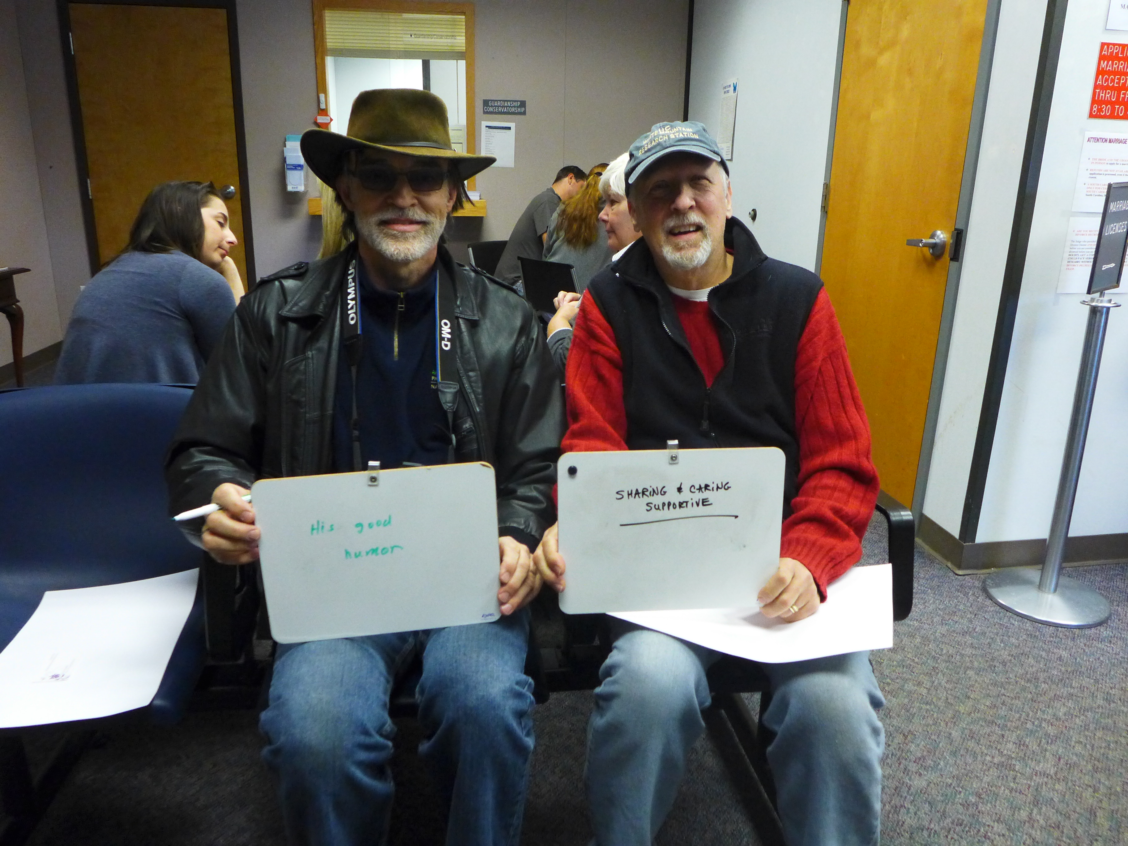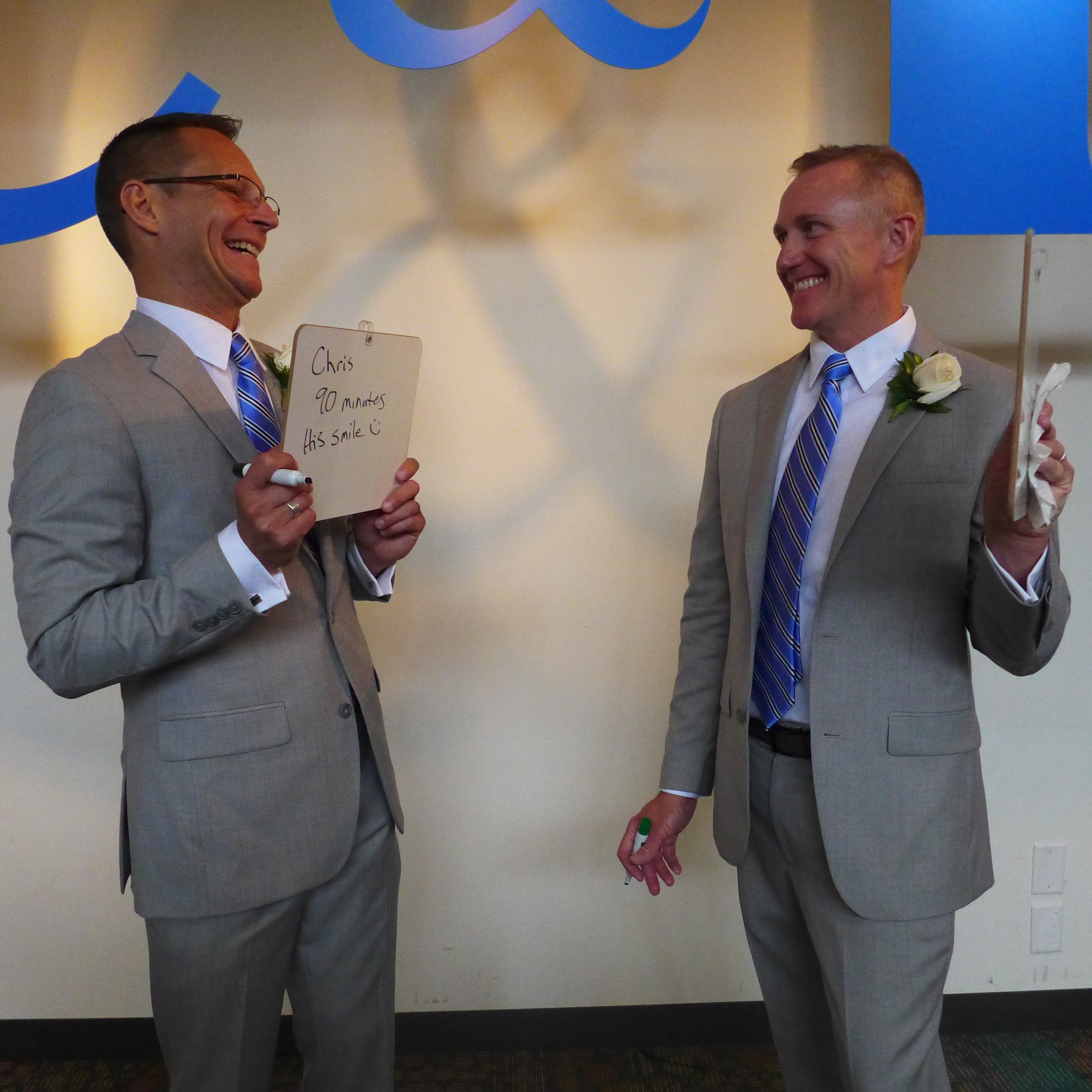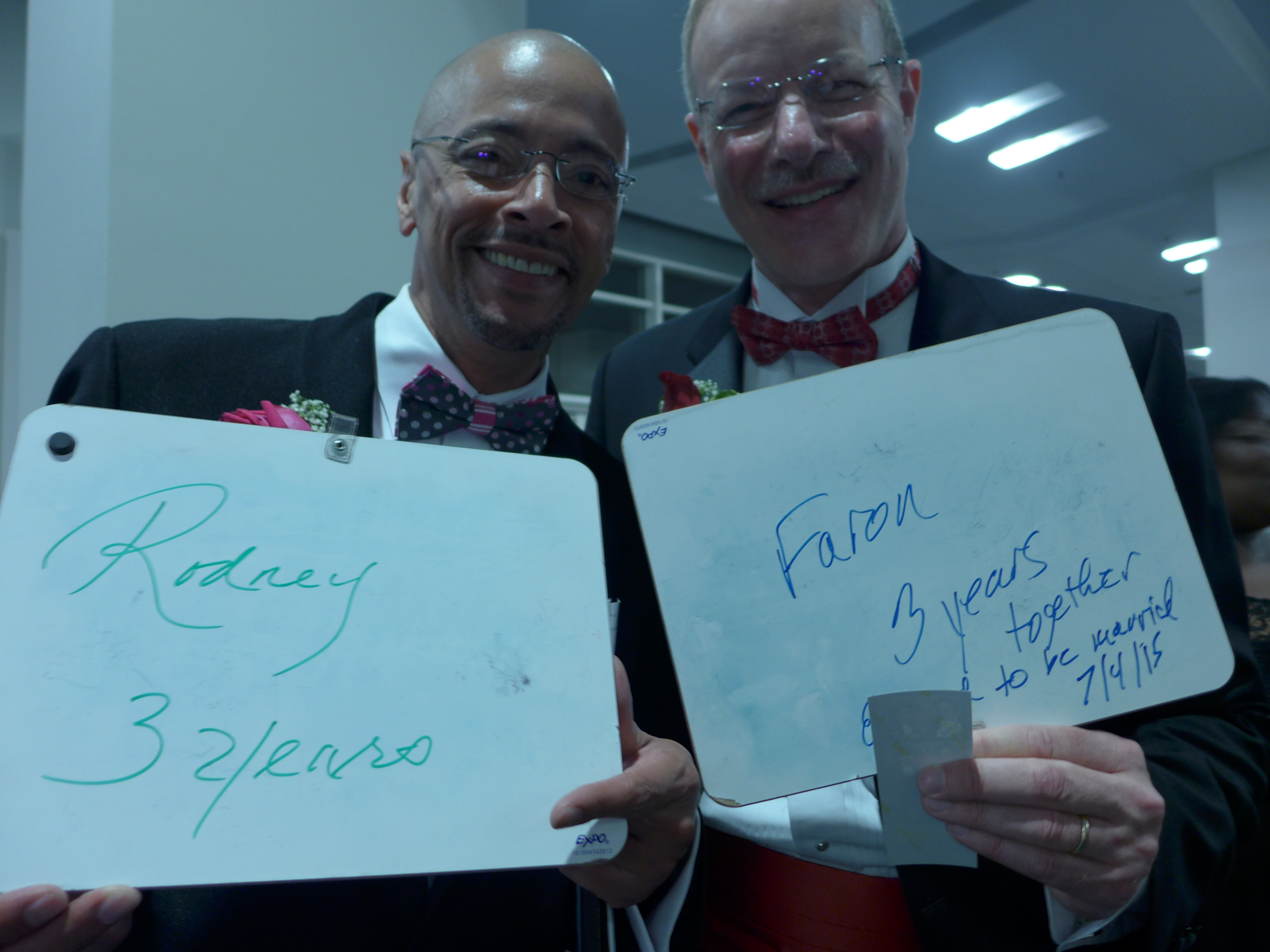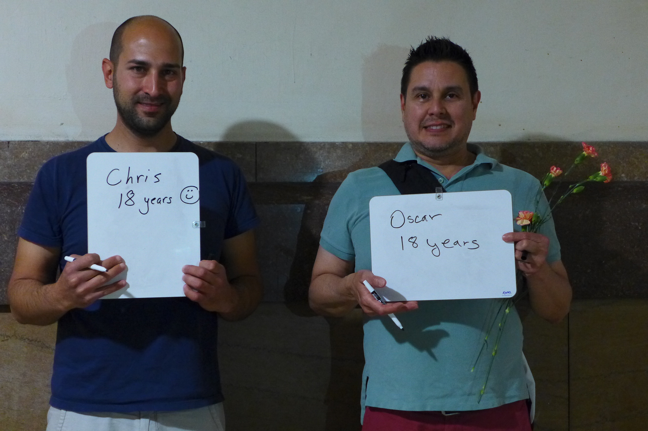 First, I asked them to write how long they had been together. (They’ve been partners for 23 years, but at the time of this picture they had been married for 90 minutes.)