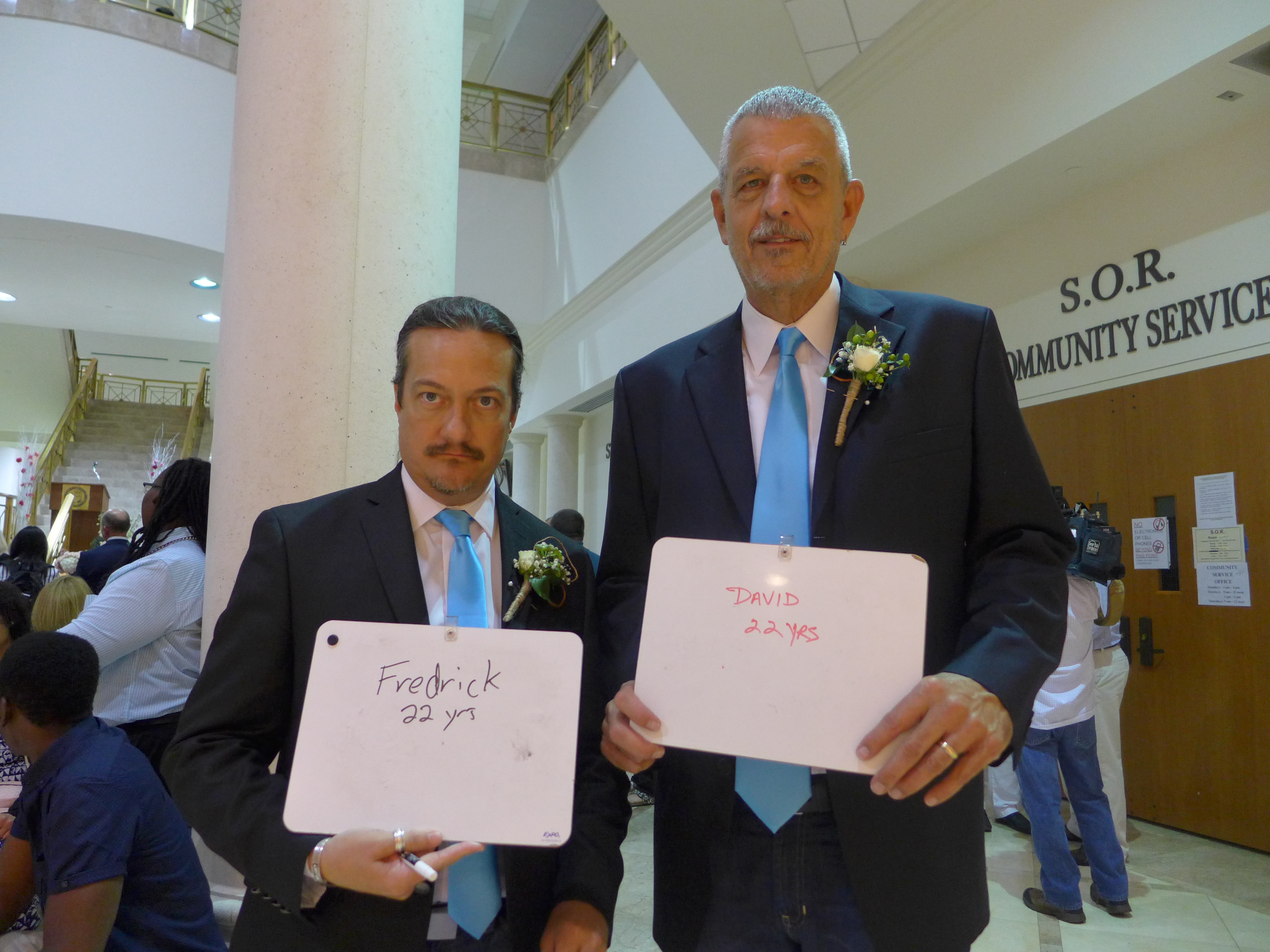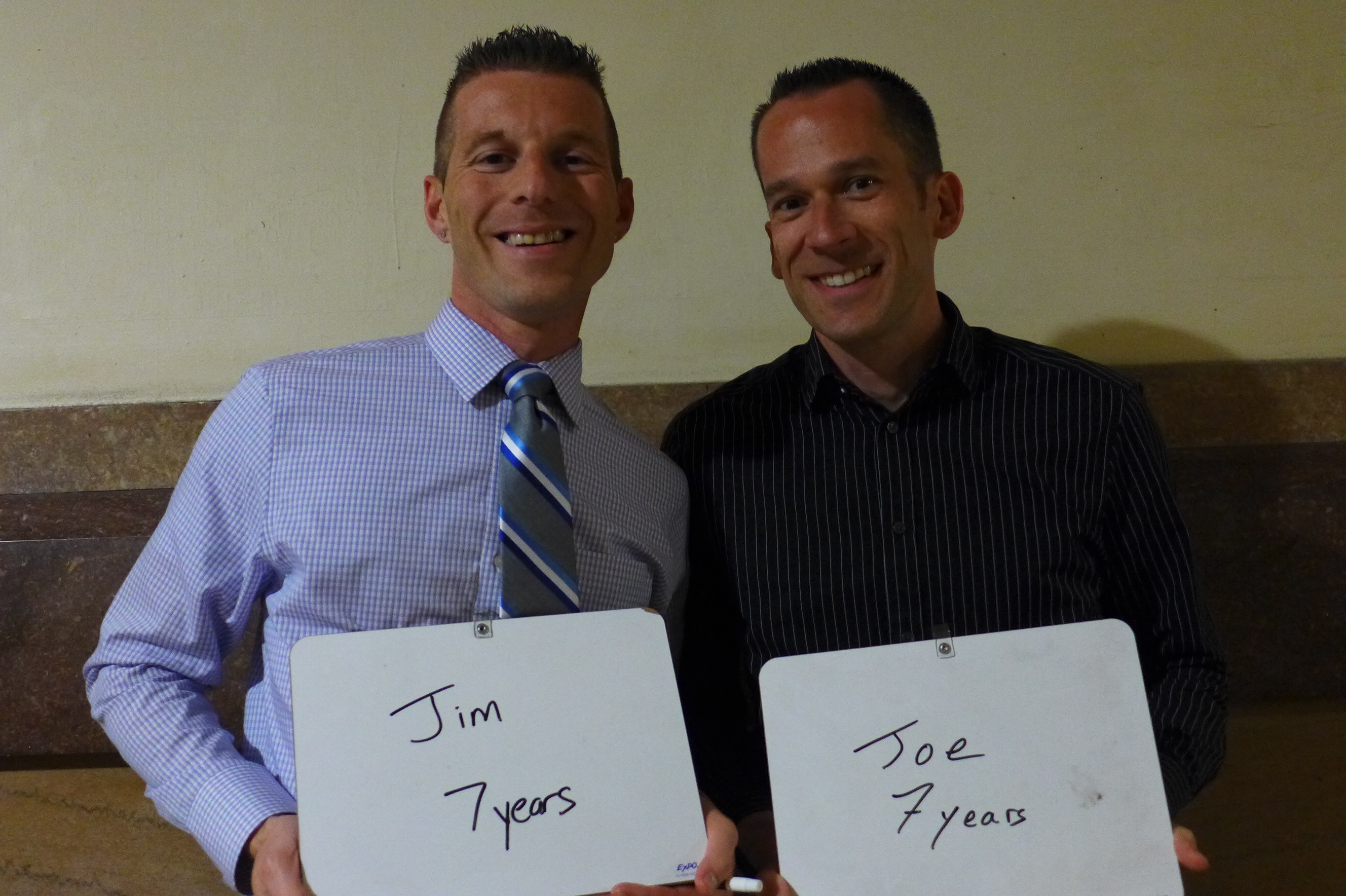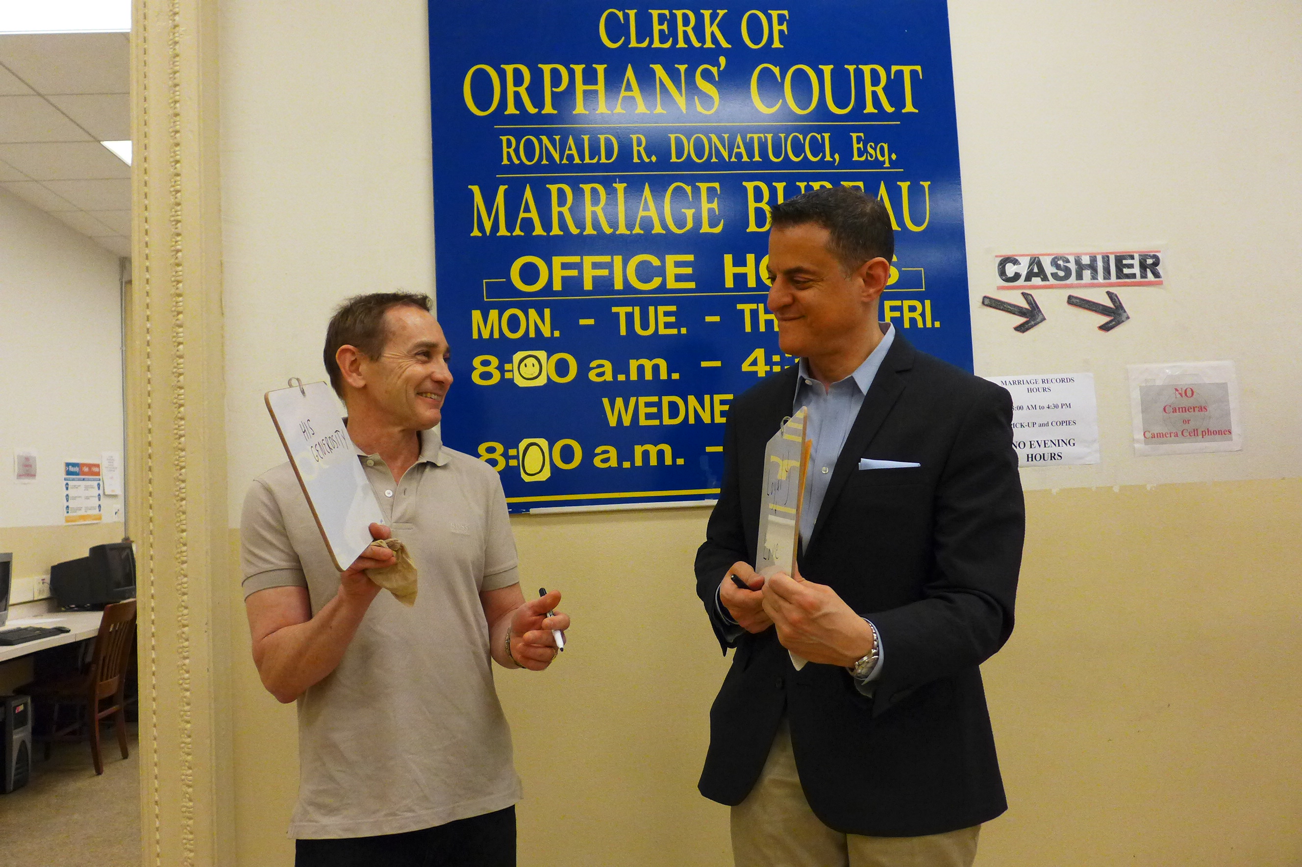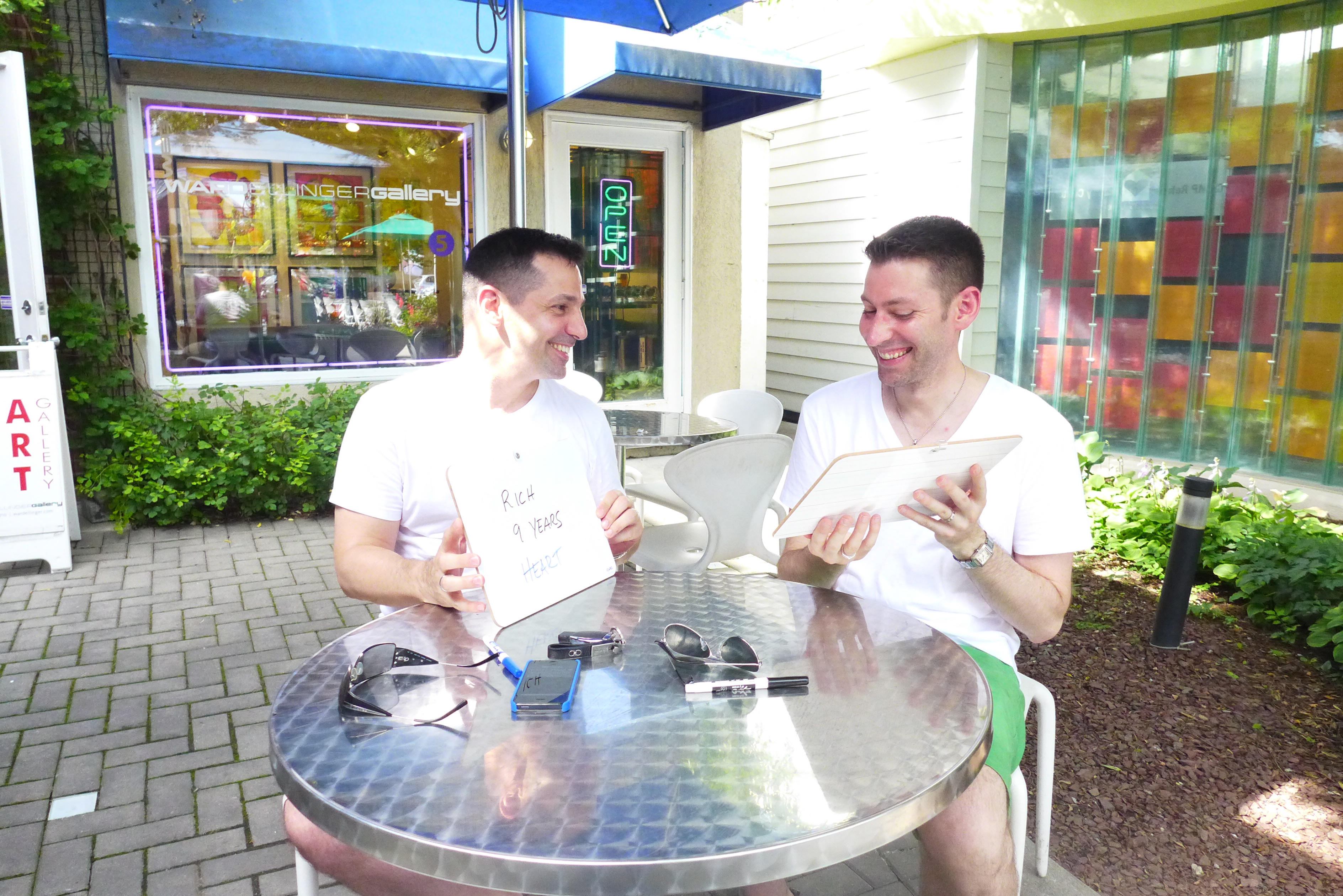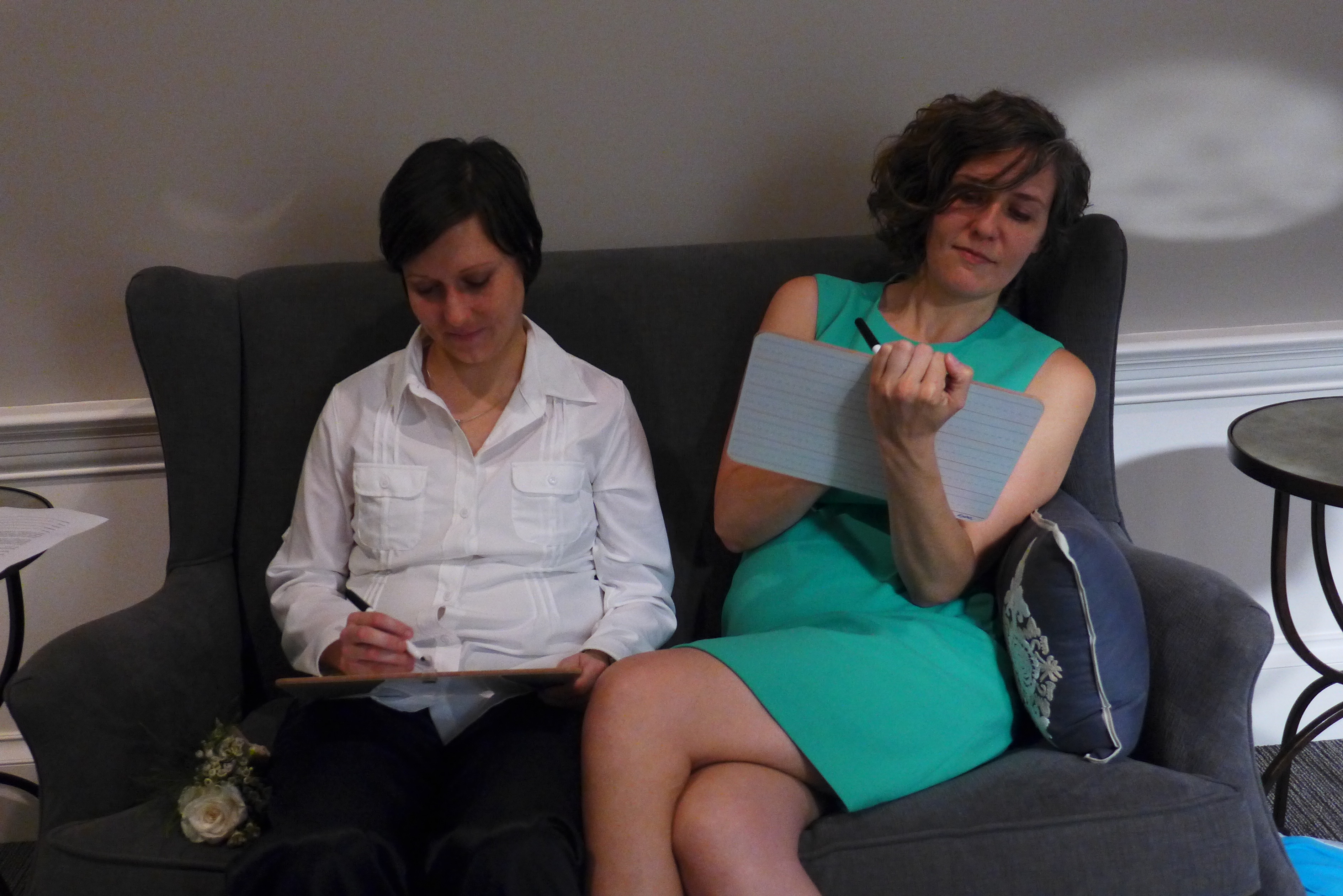 First, I asked them to write how long they had been together. (They’ve been partners for 23 years, but at the time of this picture they had been married for 90 minutes.)