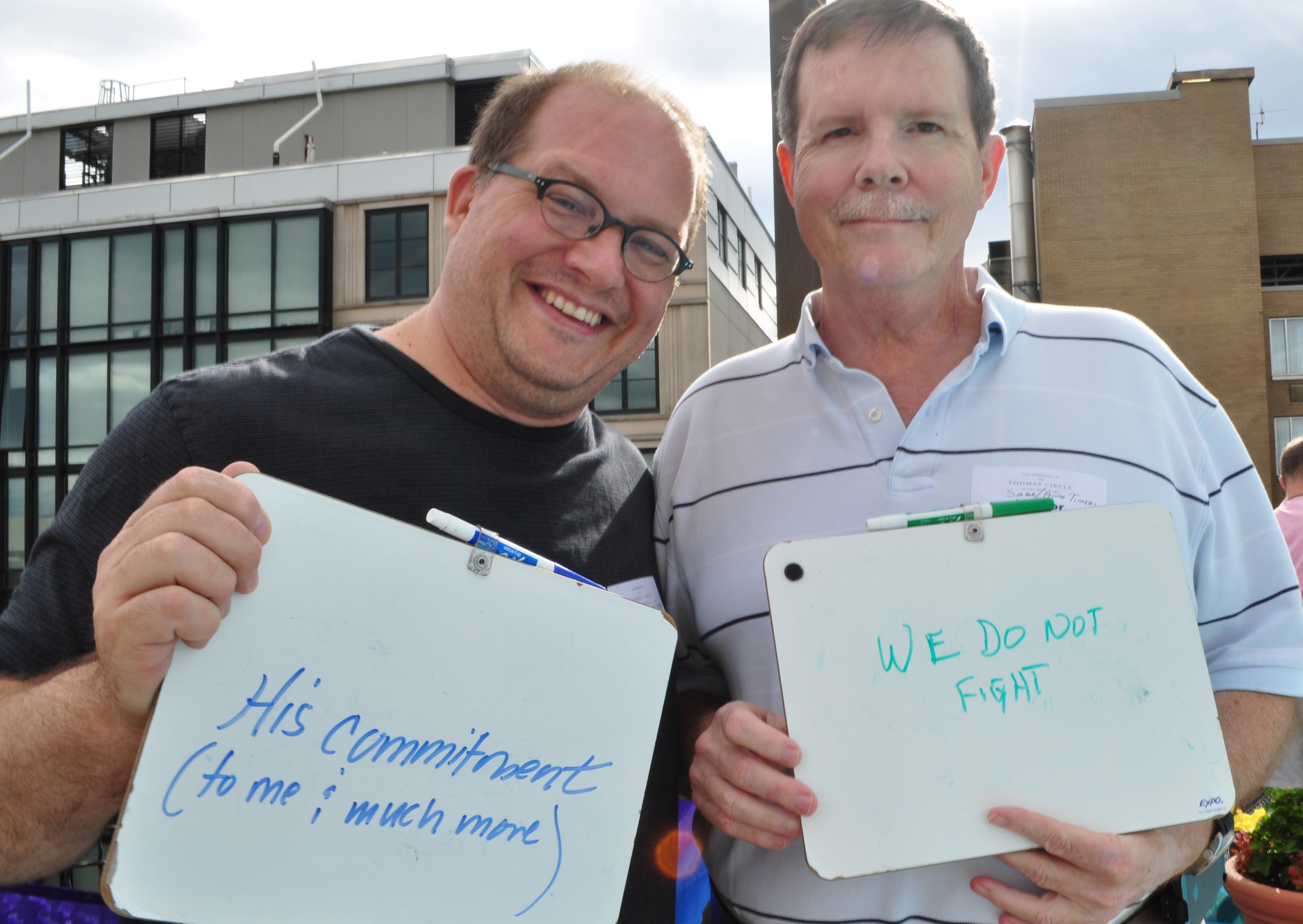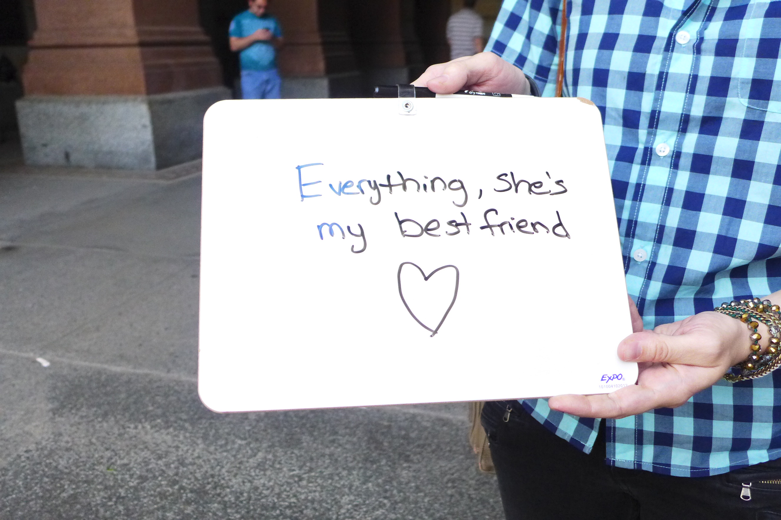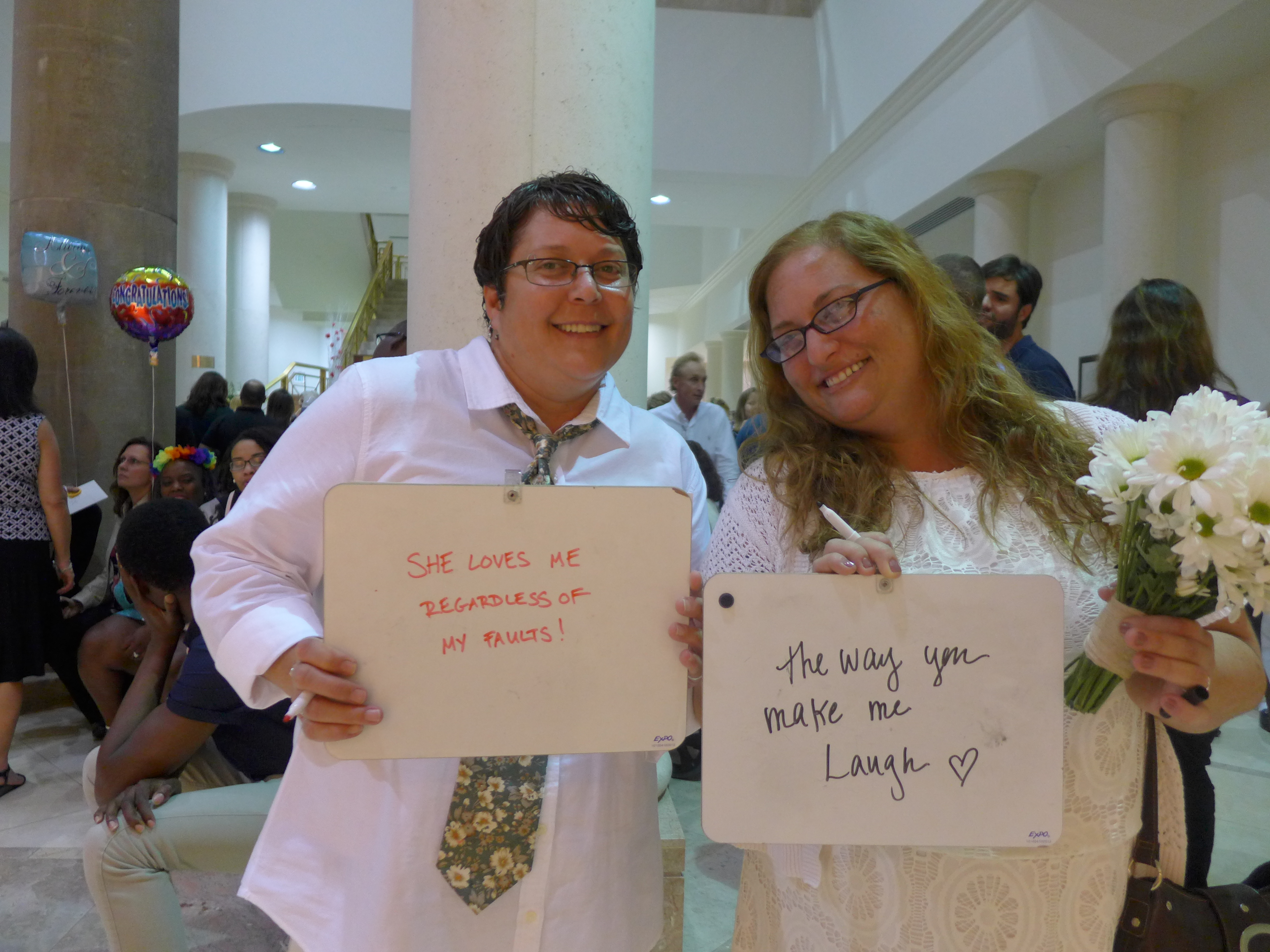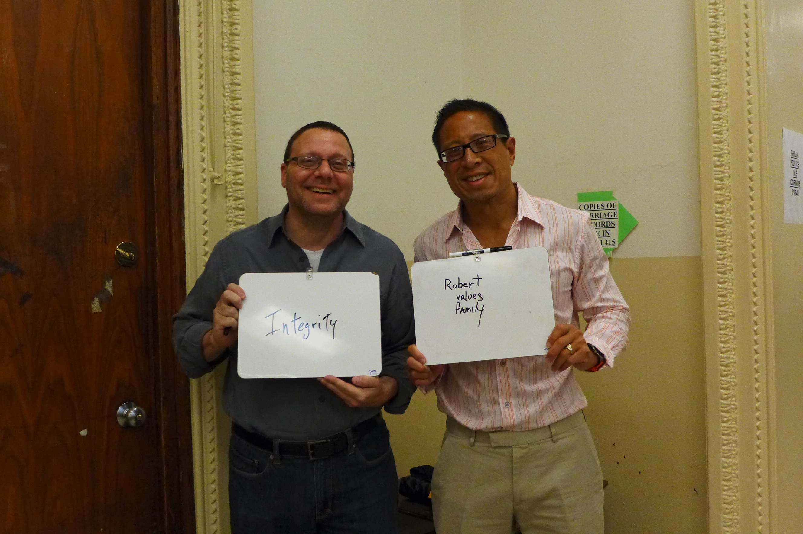 First, I asked them to write how long they had been together. (They’ve been partners for 23 years, but at the time of this picture they had been married for 90 minutes.)