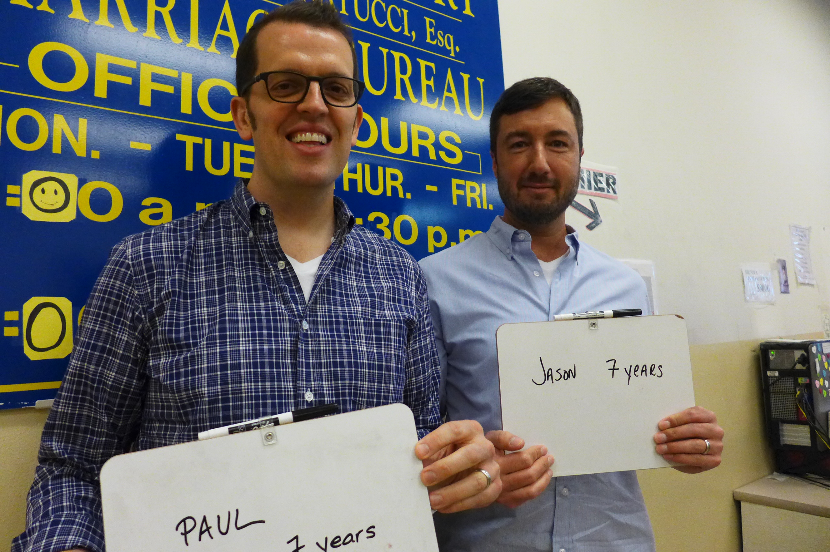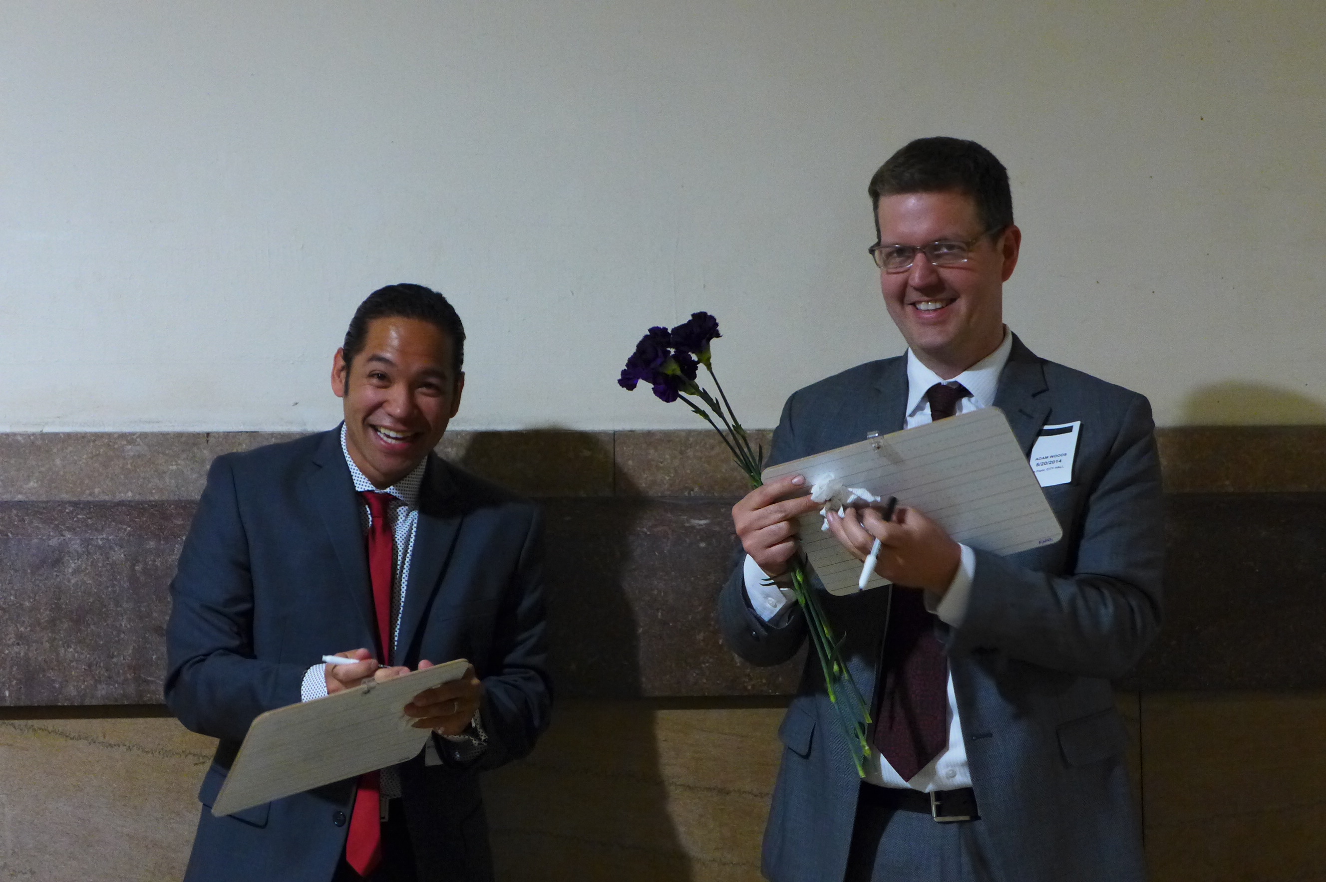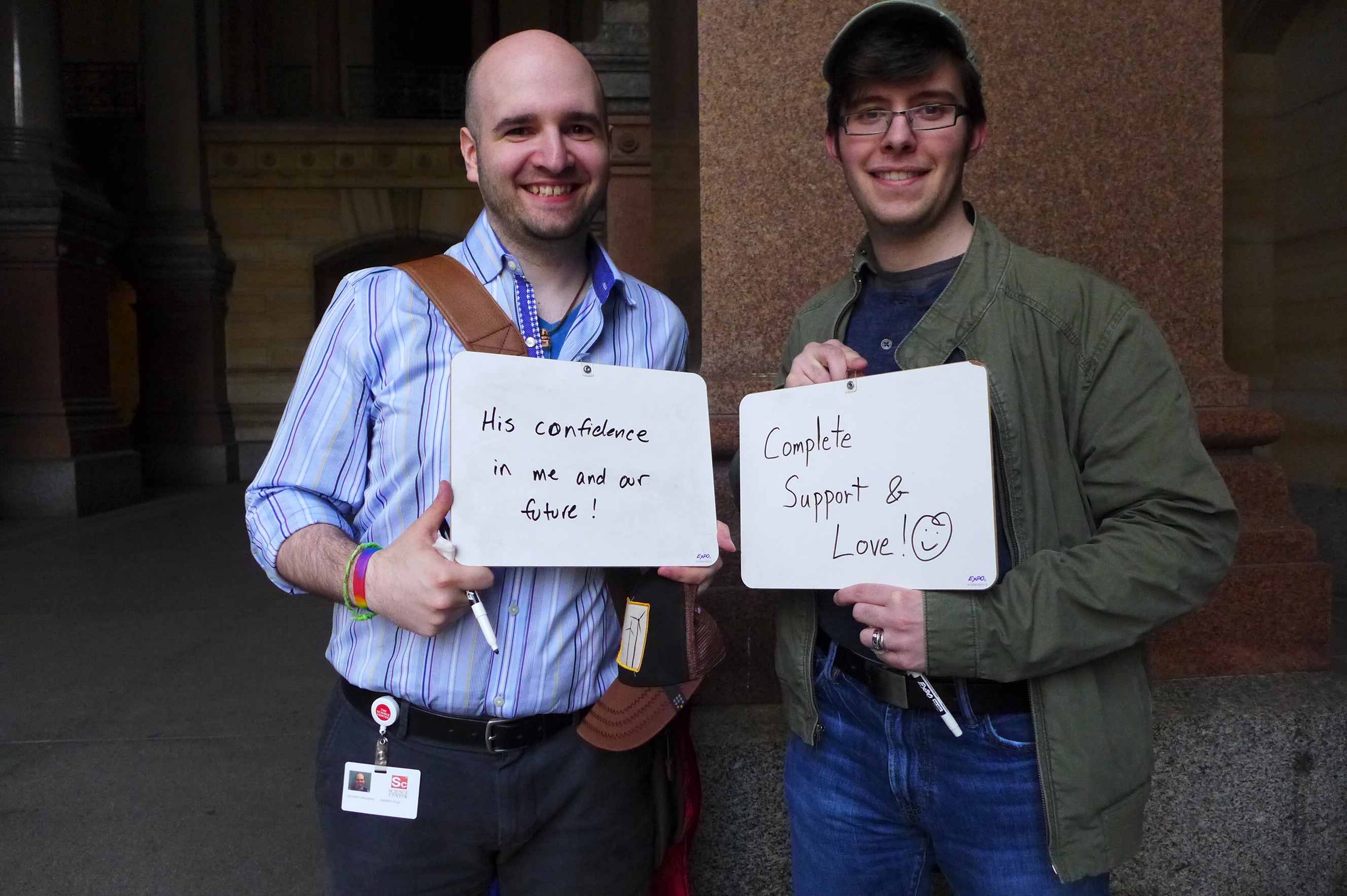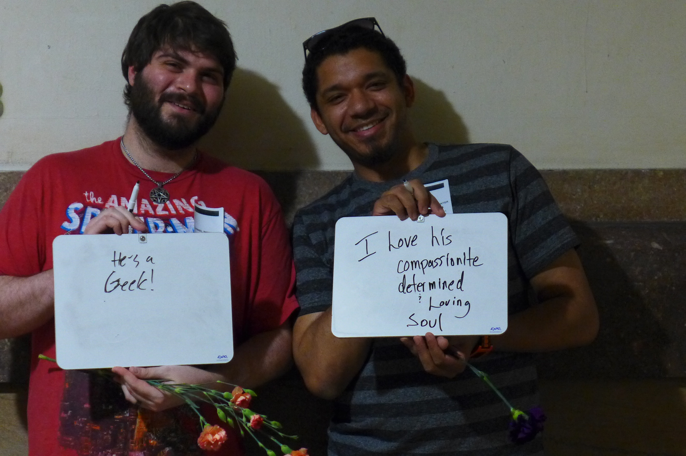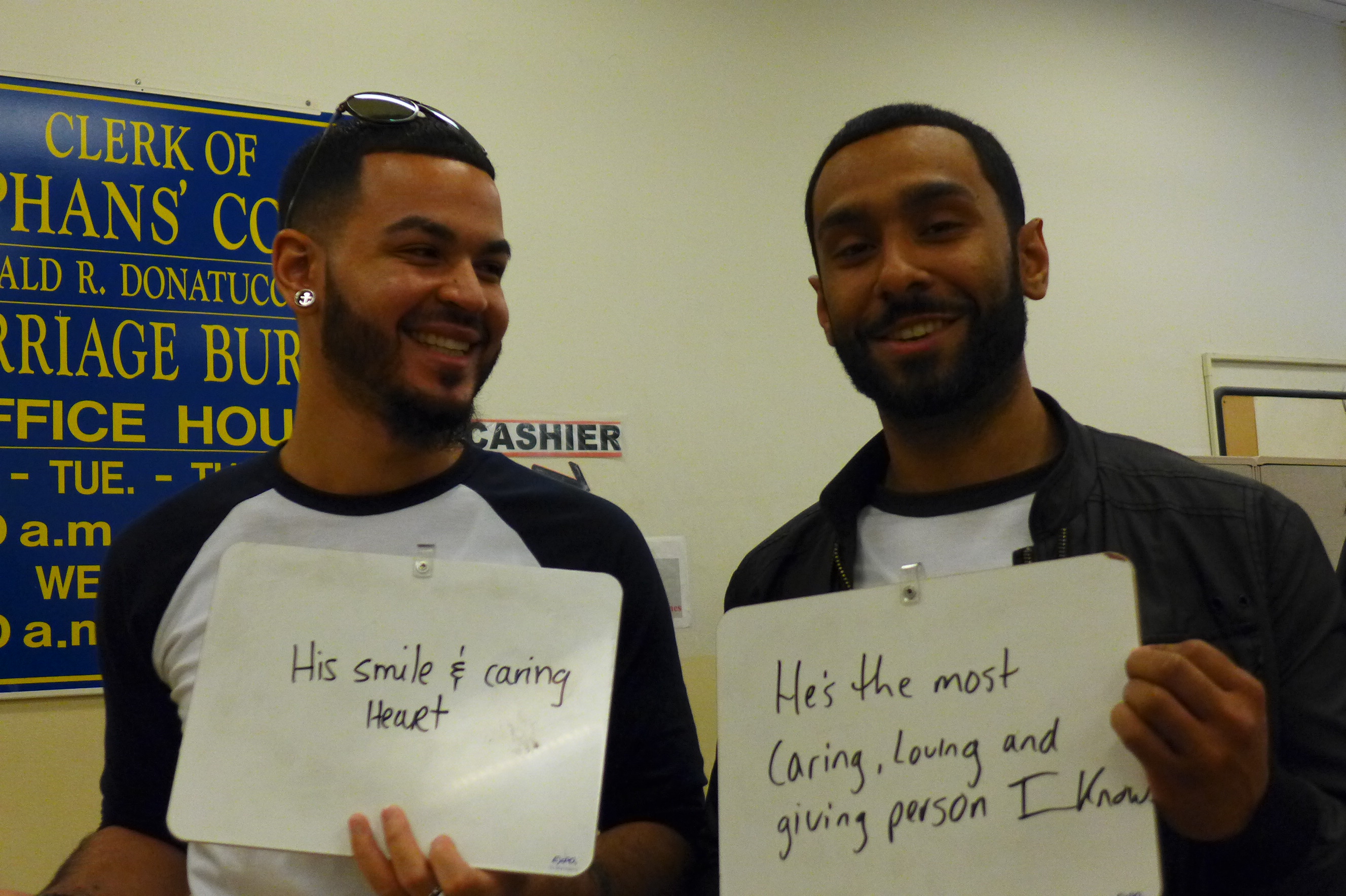 First, I asked them to write how long they had been together. (They’ve been partners for 23 years, but at the time of this picture they had been married for 90 minutes.)