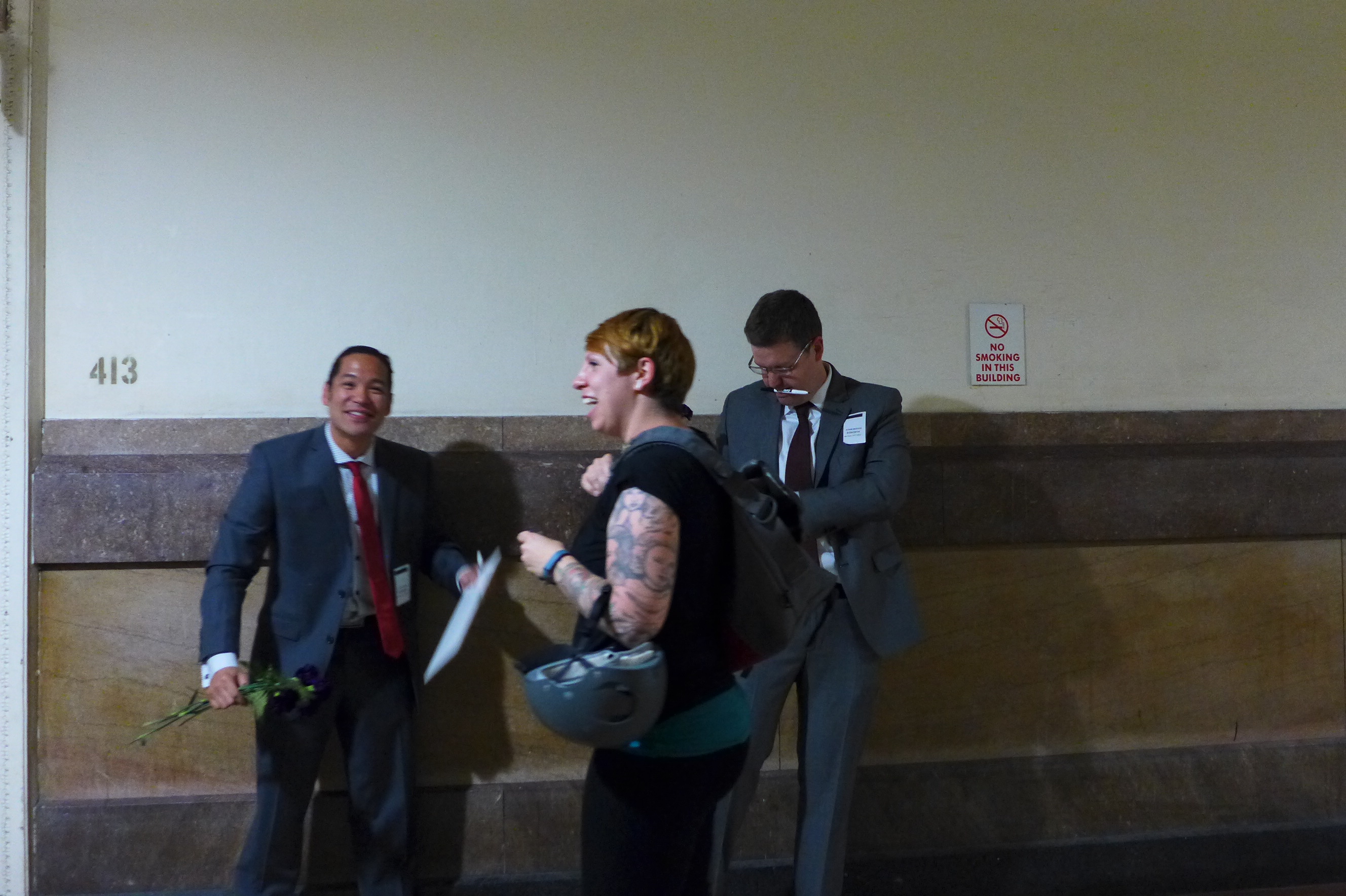 Ferri was lead sponsor of the bill on the house side. Here’s Frank and Tony with part of the Rhode Island team: